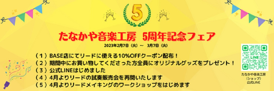 【終了】たなかや音楽工房の開催します!【5周年】 | オーボエリードのたなかや音楽工房